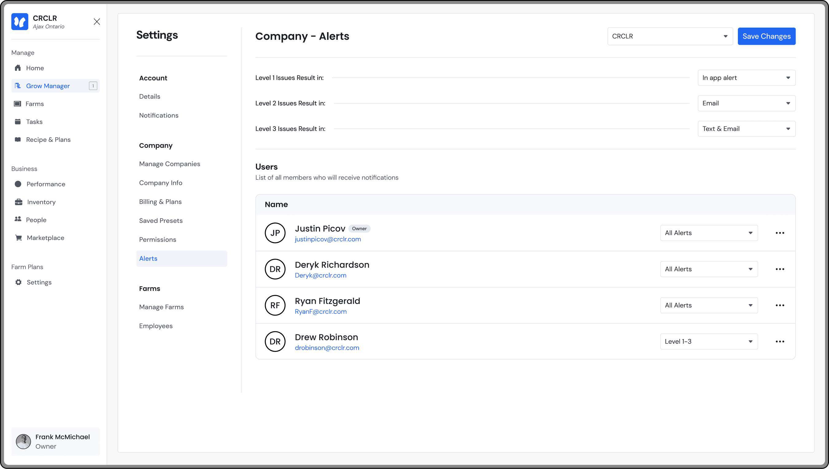 Alerts can now be configured to send in app notifications, emails or even text messages to selected users.