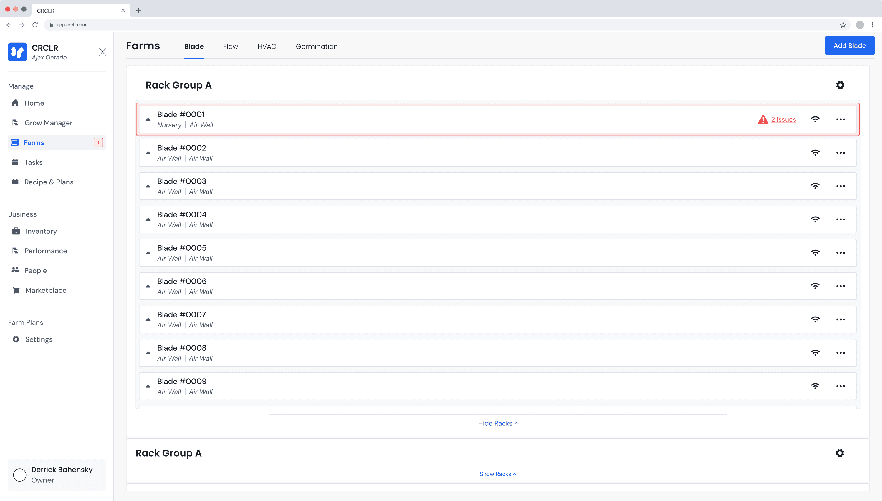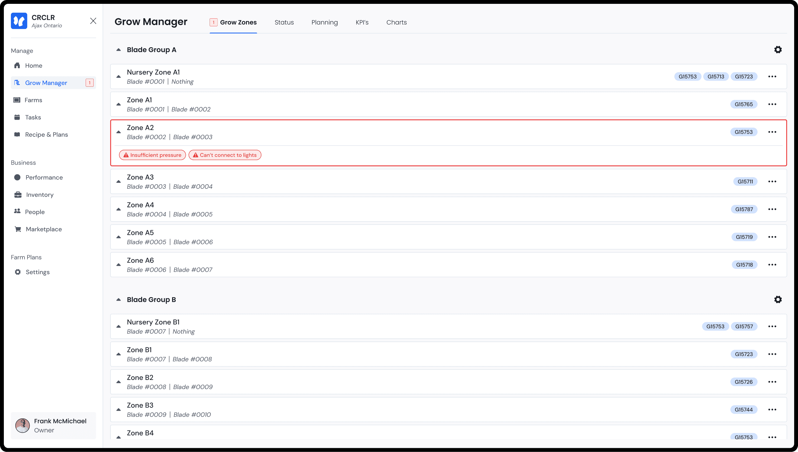 The CRCLR system is a series of movable racks, a nutrient distribution system and a software that allows users to manage indoor farms. These farms operate year round controlling all possible environmental variables such as temperature, nutrients, humidity, light levels & more.