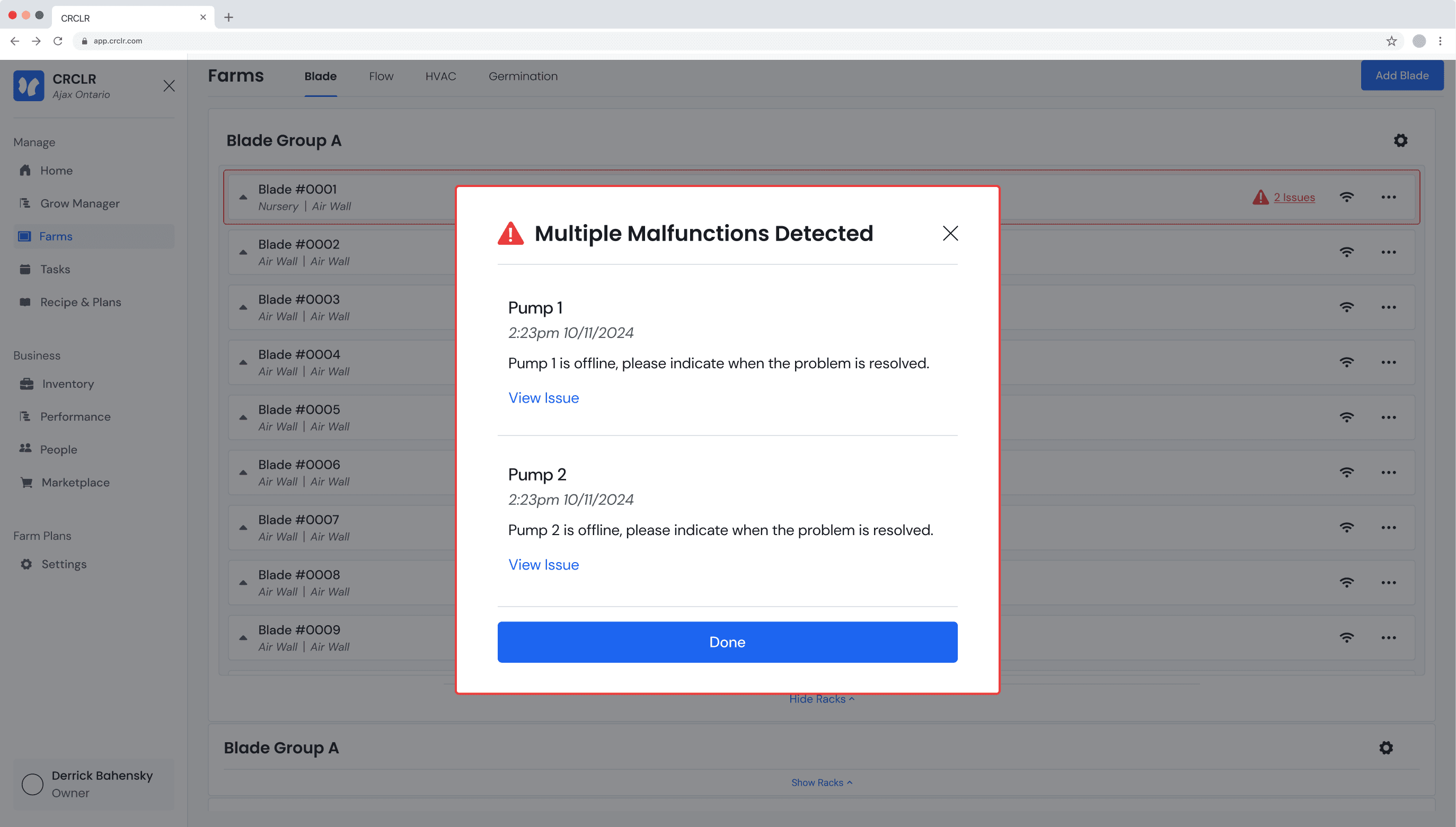 Allowing for users monitor the status of their system and identify any critical issues within their zones before they affect the overall yield of the plants.