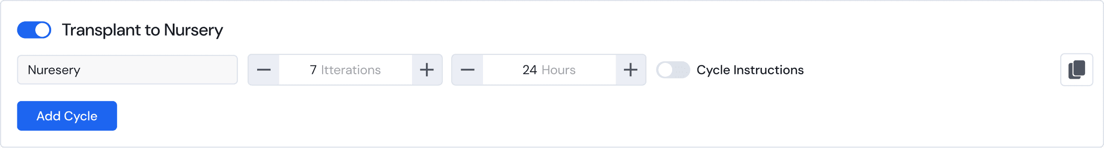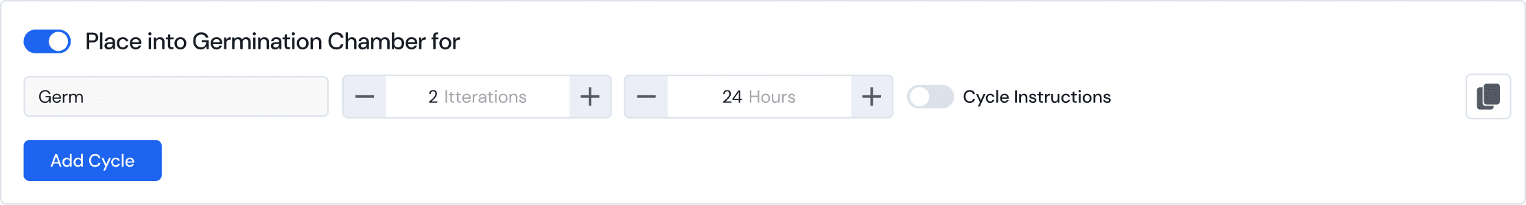 Before starting a grow, its important to clearly outline the stages of growth the plant will go through. Each of these cycles will have a unique repeating recipe for the duration decided. These timelines act as a foundation for building the recipe with variables.